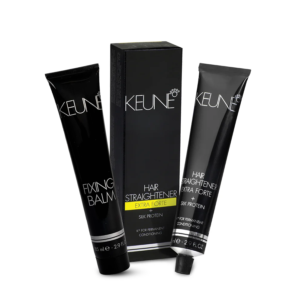Keune Hair Straightener restores the natural structure of curly hair, leaving it smooth and manageable. Keune Hair Straightener Extra Forte is especially suitable for thick and hard-to-straighten hair. One pack of Hair Straightener Extra Forte contains a tube of 2.9 oz. & Fixing Balm. It is not recommendable to use on colored, bleached, or permed hair but can be used on all other types of natural hair.